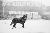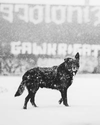 The original Detroit Dingo aka Satan. Named after the upside down white cross on his chest. This is the alpha male leader of wild dogs that roam Eastern Market.